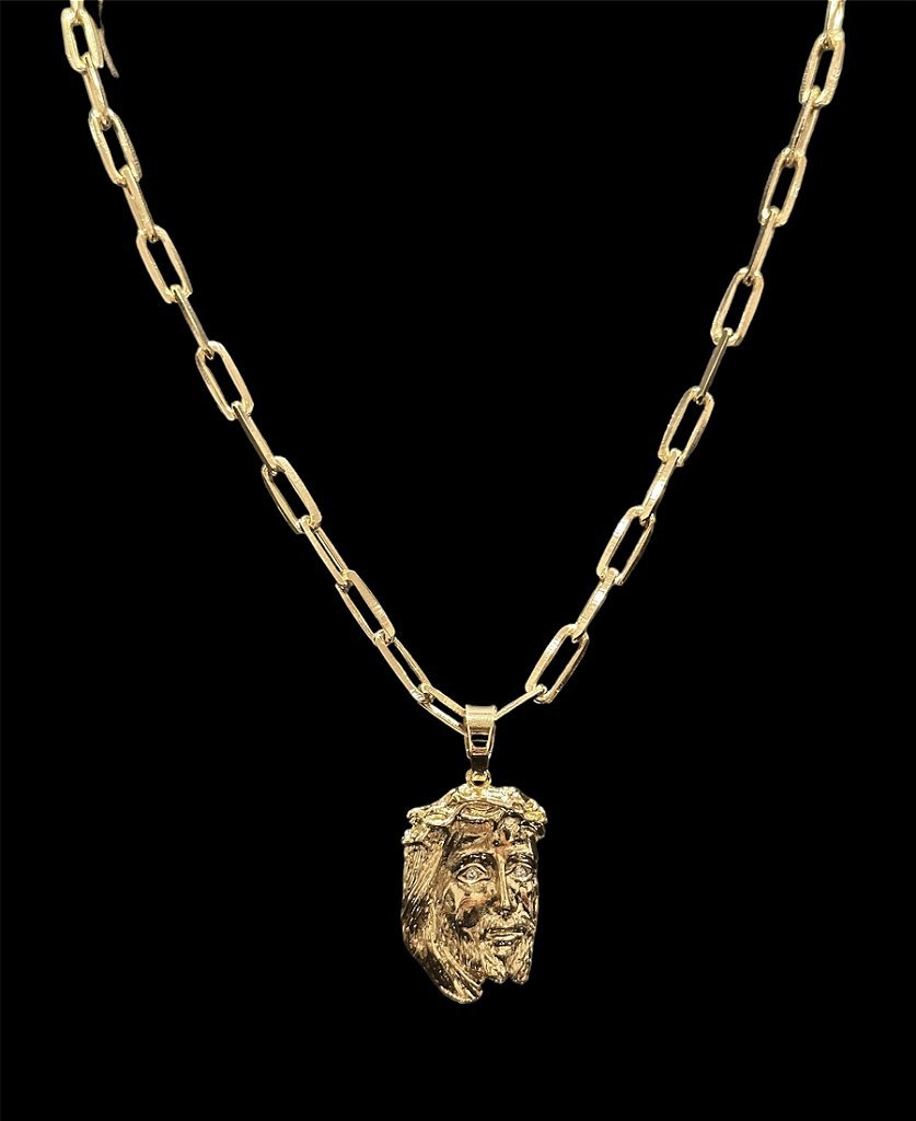 CORRENTE CARTIER TIJOLINHO 5MM + PINGENTE FACE DE CRISTO – BANHADO A OURO 18K