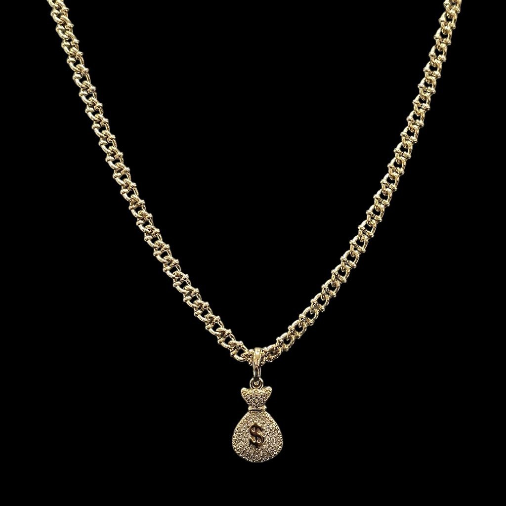 CORRENTE CUBAN DETALHADA + PINGENTE MALOTE – BANHADO A OURO 18K
