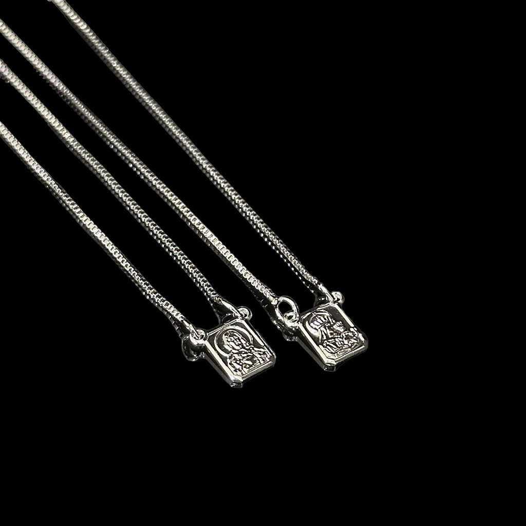 ESCAPULARIO – MENINO JESUS E SAGRADO C. -60CM – BANHADO A OURO BRANCO