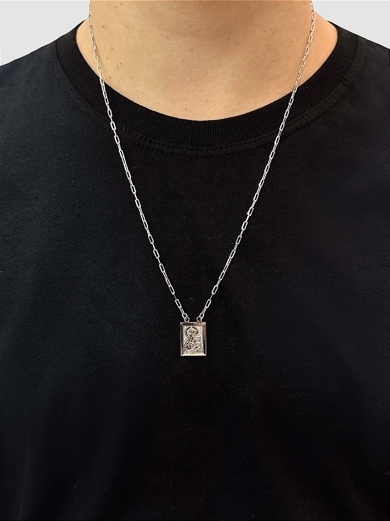 ESCAPULARIO – MENINO JESUS/SAGRADO C. -60CM- BANHADO A OURO BRANCO