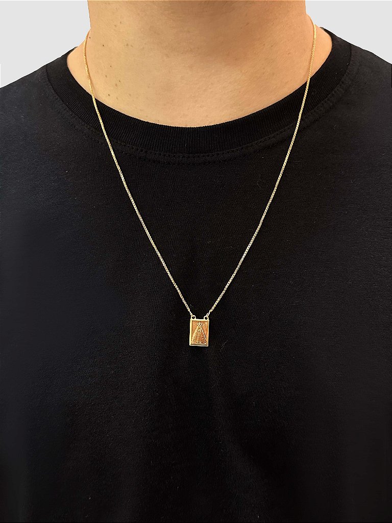 ESCAPULARIO – N.S.A. E SAGRADO CORAÇÃO – 60CM – BANHADO A OURO 18K