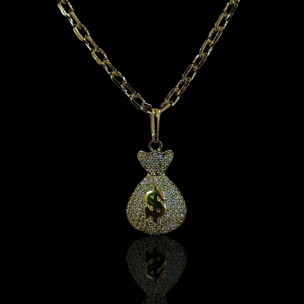 PINGENTE MALOTE – CRAVEJADO ZIRCONIA – BANHADO A OURO 18K