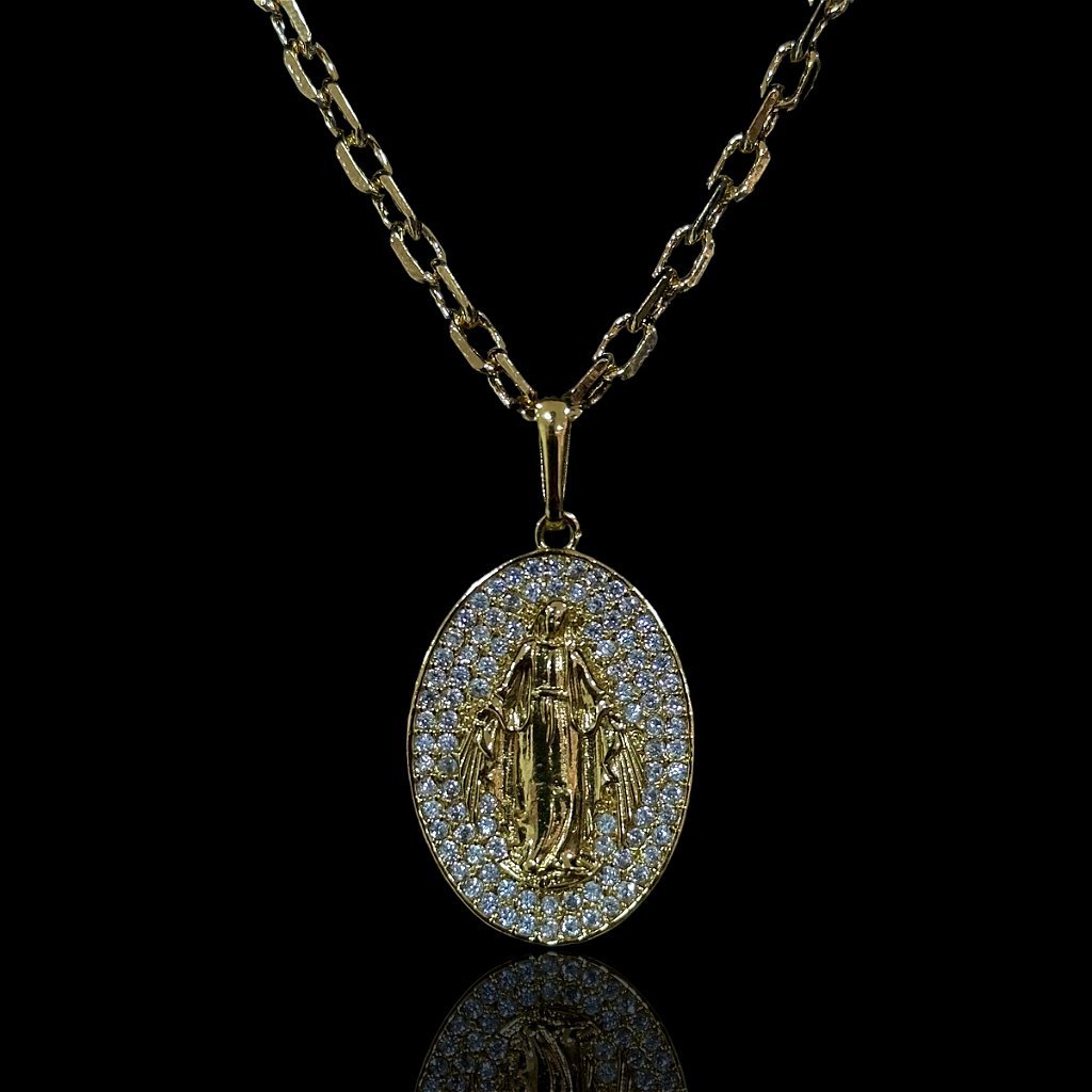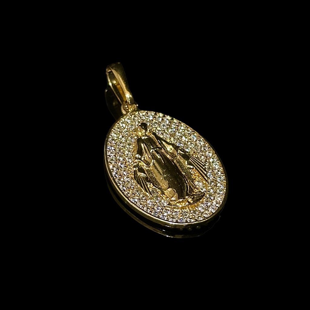 PINGENTE VIRGEM MARIA – CRAVEJADO ZIRCONIA – BANHADO A OURO 18K